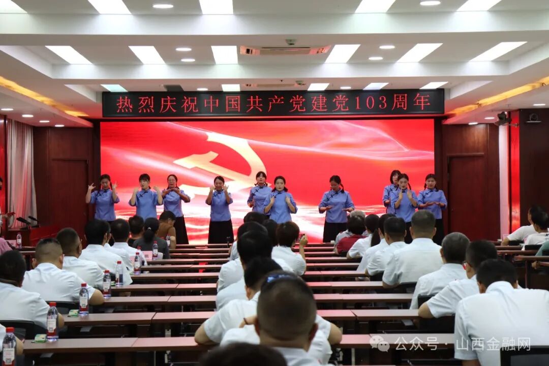 唱响红色歌曲,党的光辉永照我心。在工会主席原佳的指挥下,全体党员共唱《没有共产党就没有新中国》,激发广大党员干部的爱国热情,增强党性修养,营造浓厚的红色文化氛围,共同庆祝建党103周年。