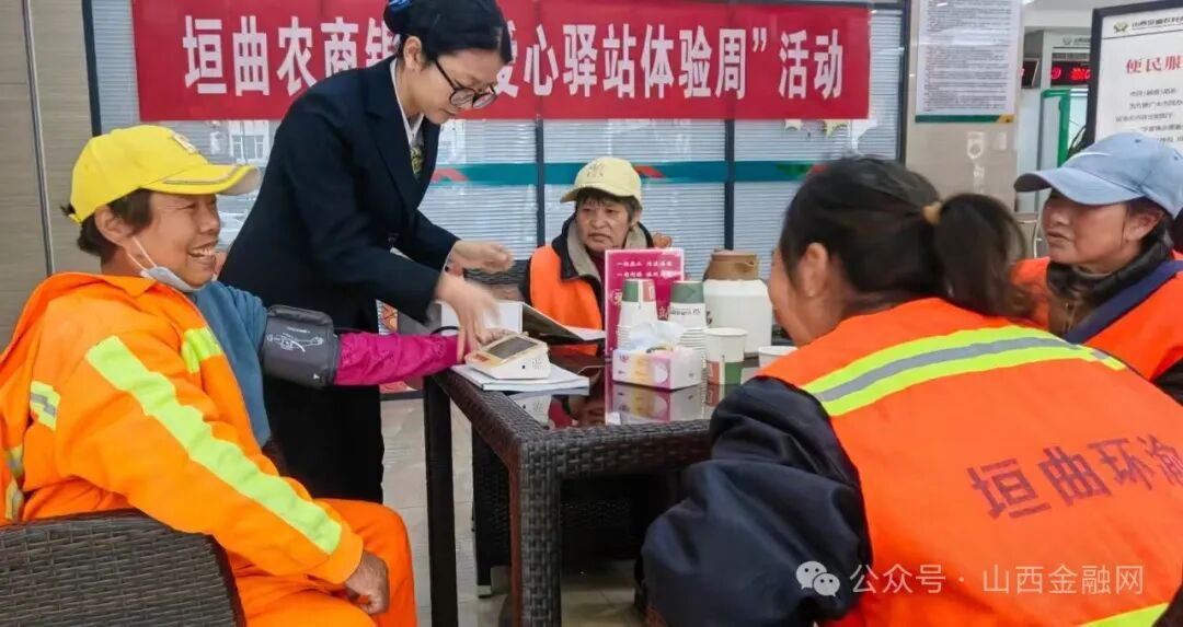 “以前干活累了,也不好意思进沿街店铺休息,只能站在外面风吹日晒,现在有了农商银行这个爱心驿站,冬暖夏凉的,我们渴了可以进来喝口水,累了可在坐在这里休息一会,跟在家里一样方便,真好!”55岁的环卫工人李大马坐在垣曲农商银行“户外劳动者爱心驿站”的沙发上说道。